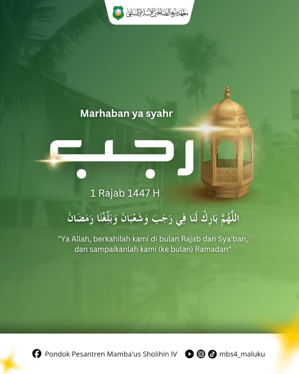 Selamat Datang bulan Rajab, bulan yang mulia Bahwasanya Rasulullah SAW ketika masuk bulan Rajab berkata, 'Ya Allah, berikanlah berkah kepada kami di Rajab dan Syakban, dan sampaikanlah kami menuju Ramadan'.[ Selengkapnya ... ]